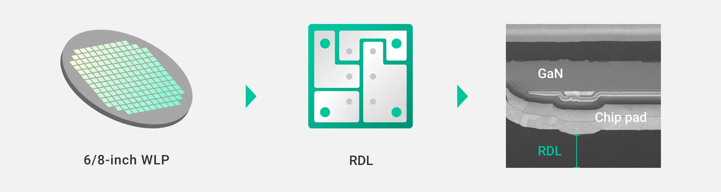 Tech Highlight 1: 6/8-inch Wafer-level package with RDL process