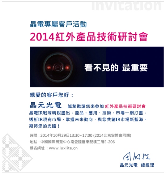 晶元光電邀請您參加 2014 紅外產品技術研討會