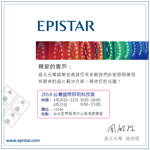 晶元光電邀請您蒞臨2014台灣國際照明科技展