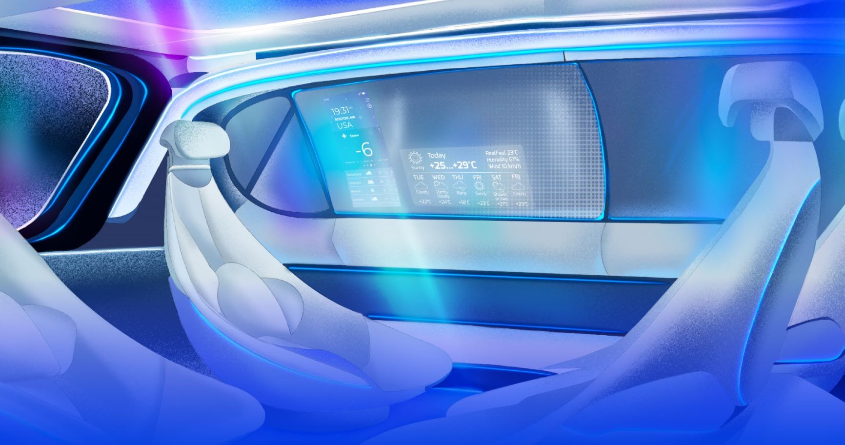 Micro LED優異的特性將逐步實現在未來車上的不同空間與應用項目,包含高透明度的側窗顯示器,搭配觸控功能即可進行娛樂、線上視訊會議等互動式功能。而Micro LED顯示器可彎曲的獨特優勢可結合座艙設計,製作可卷式顯示器,讓車內擁有更彈性的運用空間。此外,Micro LED在HUD上也有兩種不同的Micro LED應用技術,包含高亮度小面積投射光源抬頭顯示器(HUD)及透明全景式抬頭顯示器(P-HUD),兩種都將為未來車帶來更多可能性。除了車內顯示外,微小顆粒的Micro LED還可打造更細膩的小面積投射光源,近年來,豪華車型已經搭載了大於10,000區的矩陣式車前燈(ADB)。隨著Micro LED技術的不斷成熟,車廠有望將其應用於更平價的車型,實現對外顯示資訊的更好提示效果,進而推動LEVEL3的法規和自動駕駛車的上市。